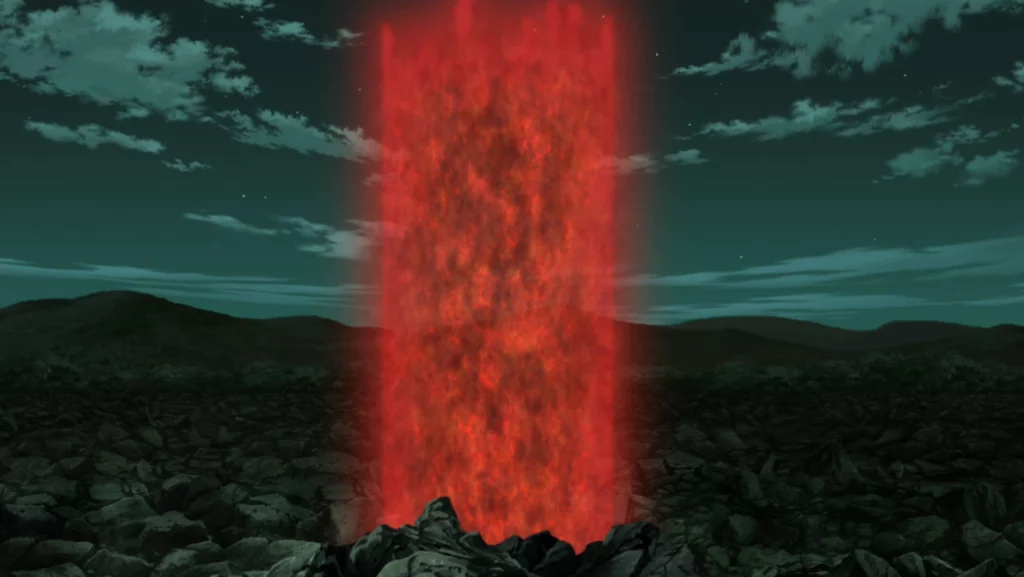 One of my favorite Uchiha Jutsus. It is a defensive jutsu. After manifesting small chakra flames on each finger of one hand, the user then slams their palm on the ground, resulting in the creation of a cylindrical barrier enveloping a location of their choosing, protecting anything contained within and burning whatever comes into contact with the barrier’s exterior.