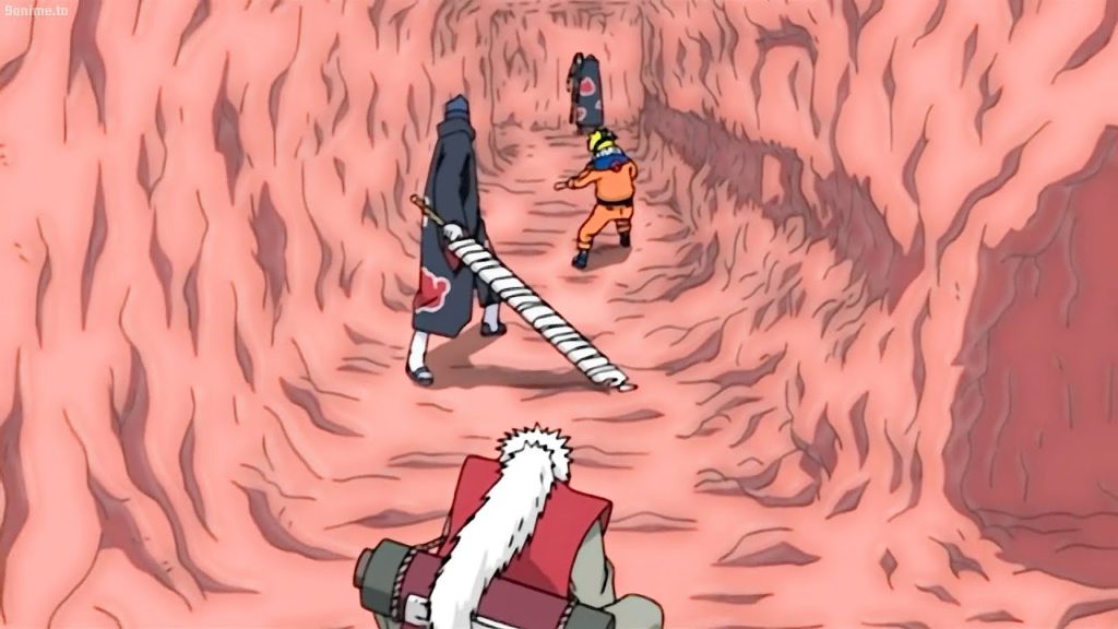 A technique that summons only an organ: the oesophagus of a great, fire-breathing toad from Mount Myōboku, sending the enemy into its stomach. If activated inside a building or a cave, this trick can trap the enemy without them realising it. The inside of the oesophagus is highly flexible, and adhesive, and won’t even allow liberty of movement. In time, the walls of flesh close in and envelop the enemy, dooming them to go inside the stomach where they will be digested.