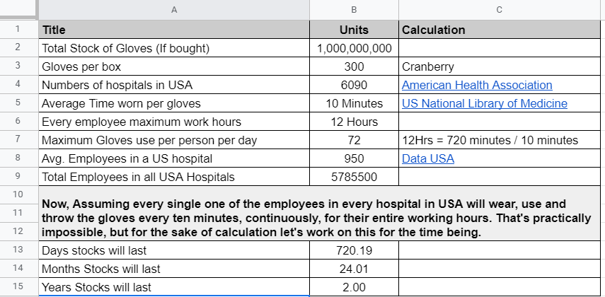 COVID-19 causes states of emergencies in a lot of countries worldwide. This forces governments around the world to take desperate measures, including seizing stocks already on the ground. If there is a stock of one billion gloves ready to be dispatched and just waiting for a buyer when the state of emergency goes into effect, the government will seize it in an instant, and the seller will receive his money only weeks after filing a complaint. And they will only receive the money they invested in, not the associated costs. So, in other words: no big returns then.